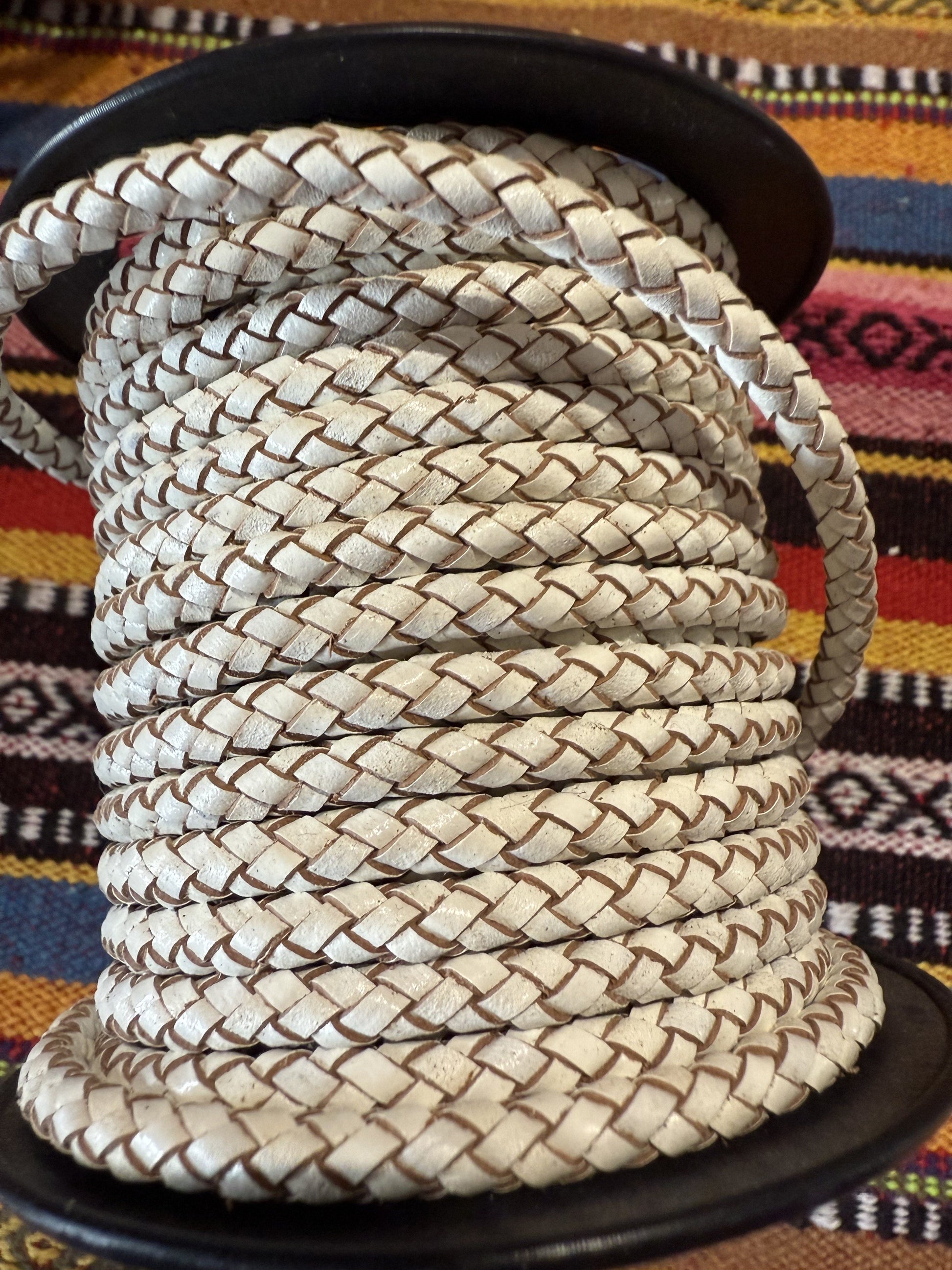 Gevlochten Leer Beige/wit ( prijs is per meter )