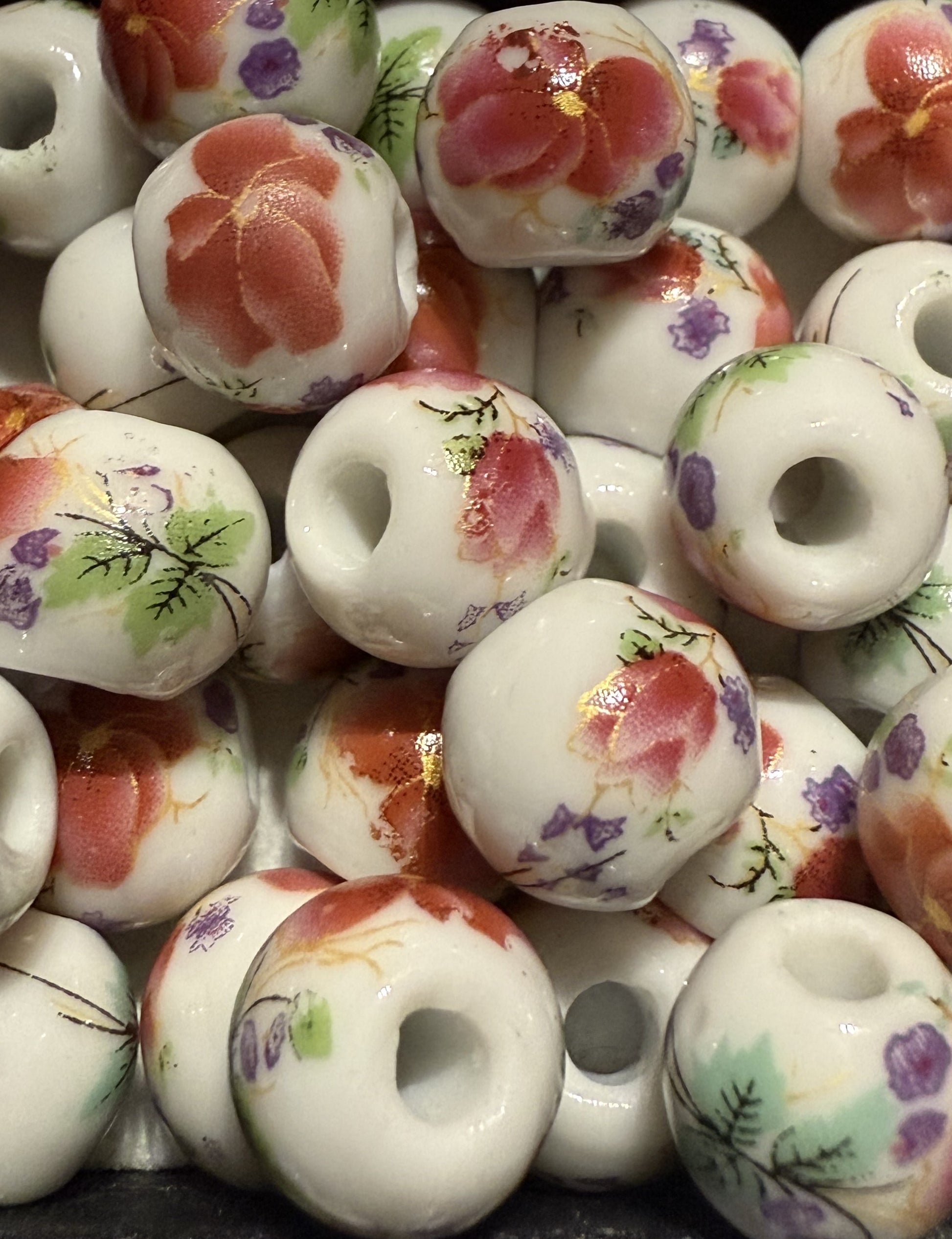 Porselein kralen bloemmotief ( roze/rood/wit